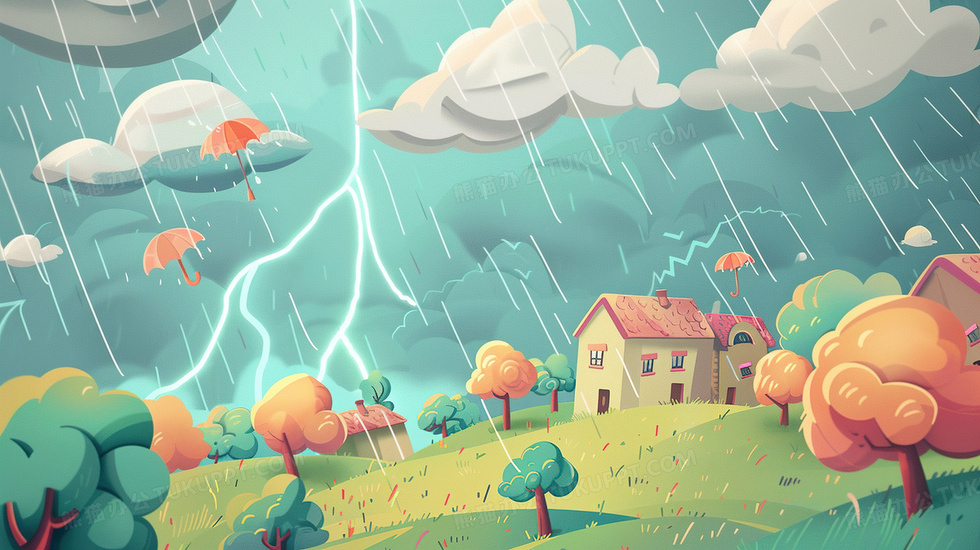 本作品内容为打雷闪电国际气象日村庄场景插画, 格式为 jpg, 大小4 MB, 图片尺寸为2912 x 1632, 源文件无水印, 欢迎使用熊猫办公。 如认为平台内容涉嫌侵权,可通过邮件:tousu@tukuppt.com提出书面通知,我们将及时处理。