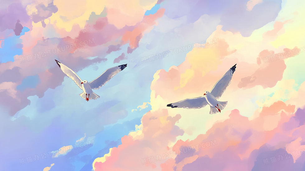 本作品内容为飞行在天空中的海鸥插画, 格式为 jpg, 大小2 MB, 图片尺寸为2912 x 1632, 源文件无水印, 欢迎使用熊猫办公。 如认为平台内容涉嫌侵权,可通过邮件:tousu@tukuppt.com提出书面通知,我们将及时处理。