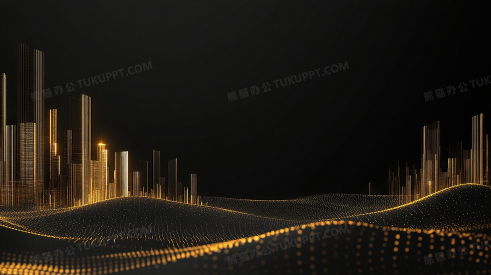 本作品内容为黑金城市建筑房屋背景, 格式为 jpg, 大小2 MB, 图片尺寸为2912 x 1632, 作品中背景图片无需修改, 源文件无水印,可以直接使用, 欢迎使用熊猫办公。 如认为平台内容涉嫌侵权,可通过邮件:tousu@tukuppt.com提出书面通知,我们将及时处理。