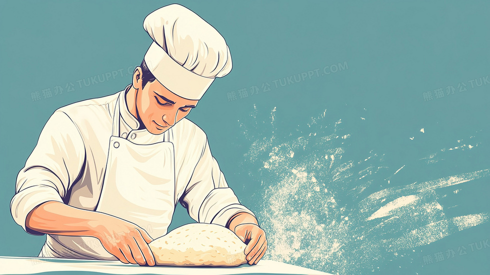 本作品内容为卡通烘焙厨师背景, 格式为 jpg, 大小2 MB, 图片尺寸为2912 x 1632, 作品中背景图片无需修改, 源文件无水印,可以直接使用, 欢迎使用熊猫办公。 如认为平台内容涉嫌侵权,可通过邮件:tousu@tukuppt.com提出书面通知,我们将及时处理。
