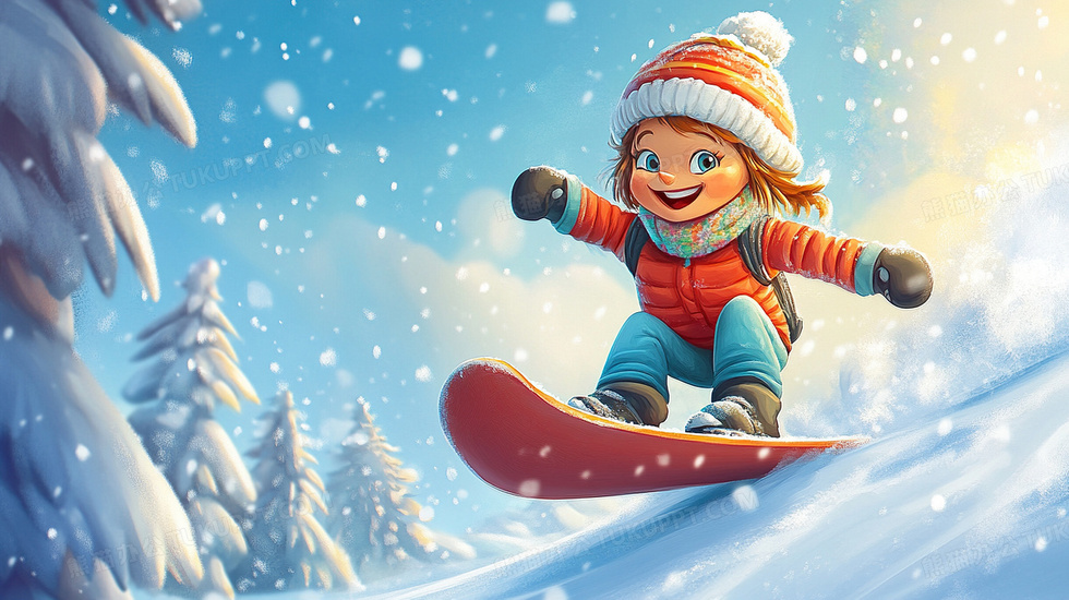 首页 > 插画 > 科技艺术 > 卡通漫画 > 滑雪板冬天雪地玩耍运动插画