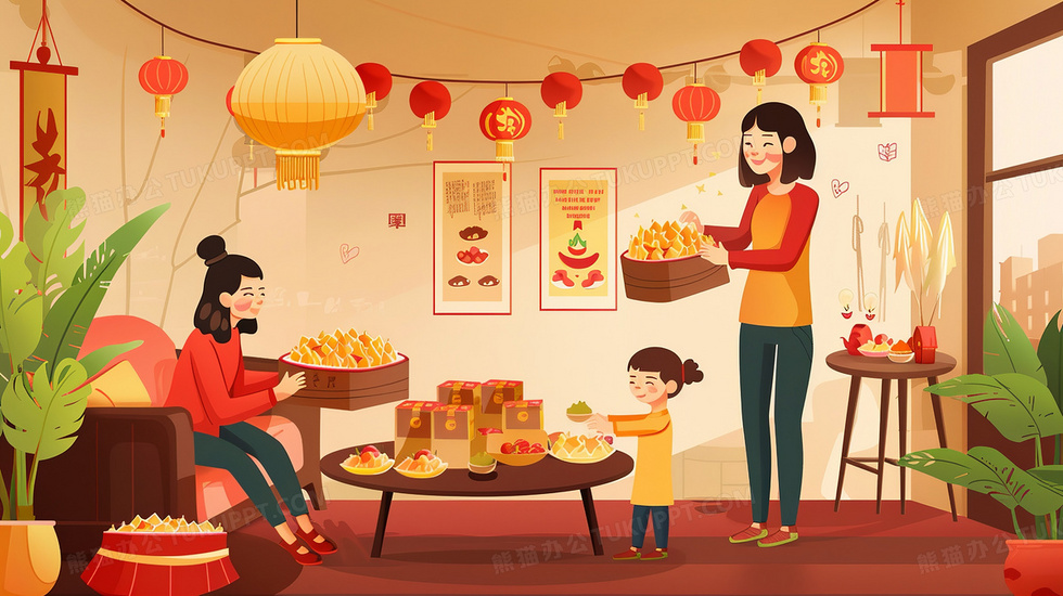 本作品内容为春节一家人在家中准备美食卡通插画, 格式为 jpg, 大小3 MB, 图片尺寸为2912 x 1632, 源文件无水印, 欢迎使用熊猫办公。 如认为平台内容涉嫌侵权,可通过邮件:tousu@tukuppt.com提出书面通知,我们将及时处理。