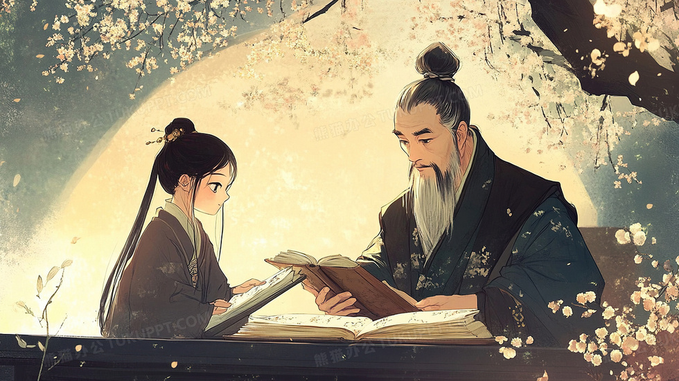 本作品内容为古代夫子授课教学场景插画, 格式为 jpg, 大小4 MB, 图片尺寸为2912 x 1632, 源文件无水印, 欢迎使用熊猫办公。 如认为平台内容涉嫌侵权,可通过邮件:tousu@tukuppt.com提出书面通知,我们将及时处理。