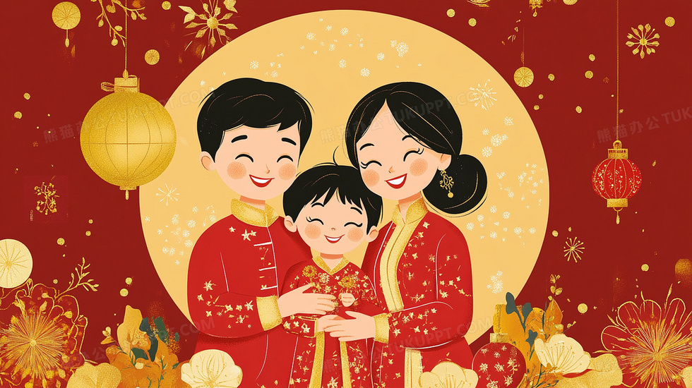 本作品内容为新年春节阖家团圆插画, 格式为 jpg, 大小3 MB, 图片尺寸为2912 x 1632, 源文件无水印, 欢迎使用熊猫办公。 如认为平台内容涉嫌侵权,可通过邮件:tousu@tukuppt.com提出书面通知,我们将及时处理。