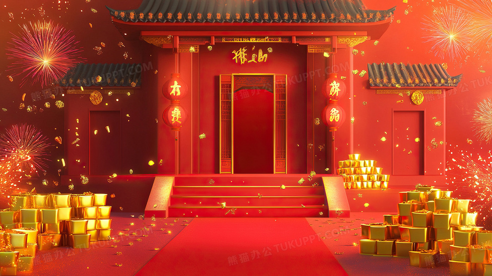 本作品内容为中国风大门开门红春节新年插画, 格式为 jpg, 大小4 MB, 图片尺寸为2912 x 1632, 源文件无水印, 欢迎使用熊猫办公。 如认为平台内容涉嫌侵权,可通过邮件:tousu@tukuppt.com提出书面通知,我们将及时处理。