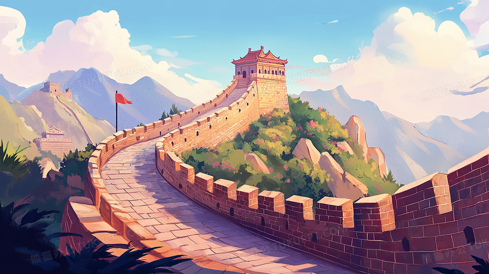 本作品内容为八达岭长城地标插画, 格式为 jpg, 大小3 MB, 图片尺寸为2912 x 1632, 源文件无水印, 欢迎使用熊猫办公。 如认为平台内容涉嫌侵权,可通过邮件:tousu@tukuppt.com提出书面通知,我们将及时处理。
