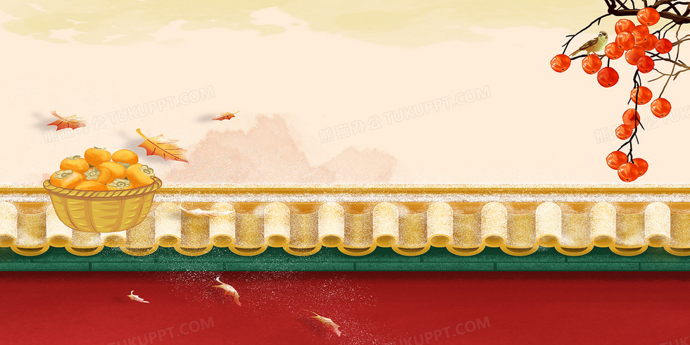 本作品内容为中国风霜降柿子红墙背景, 格式为 psd, 大小90 MB, 图片尺寸为4722 x 2361, 作品中背景图片无需修改, 源文件无水印,可以直接使用, 欢迎使用熊猫办公。 如认为平台内容涉嫌侵权,可通过邮件:tousu@tukuppt.com提出书面通知,我们将及时处理。