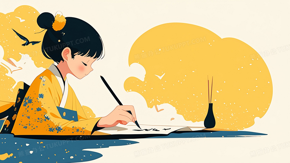 本作品内容为书房写书法毛笔字的国学书童创意背景, 格式为 jpg, 大小2 MB, 图片尺寸为2912 x 1632, 作品中背景图片无需修改, 源文件无水印,可以直接使用, 欢迎使用熊猫办公。 如认为平台内容涉嫌侵权,可通过邮件:tousu@tukuppt.com提出书面通知,我们将及时处理。
