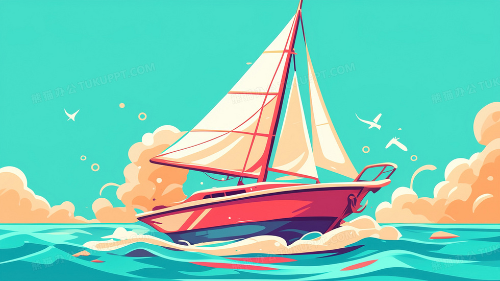本作品内容为天空白云行驶在大海上的帆船卡通插画, 格式为 jpg, 大小2 MB, 图片尺寸为2912 x 1632, 源文件无水印, 欢迎使用熊猫办公。 如认为平台内容涉嫌侵权,可通过邮件:tousu@tukuppt.com提出书面通知,我们将及时处理。