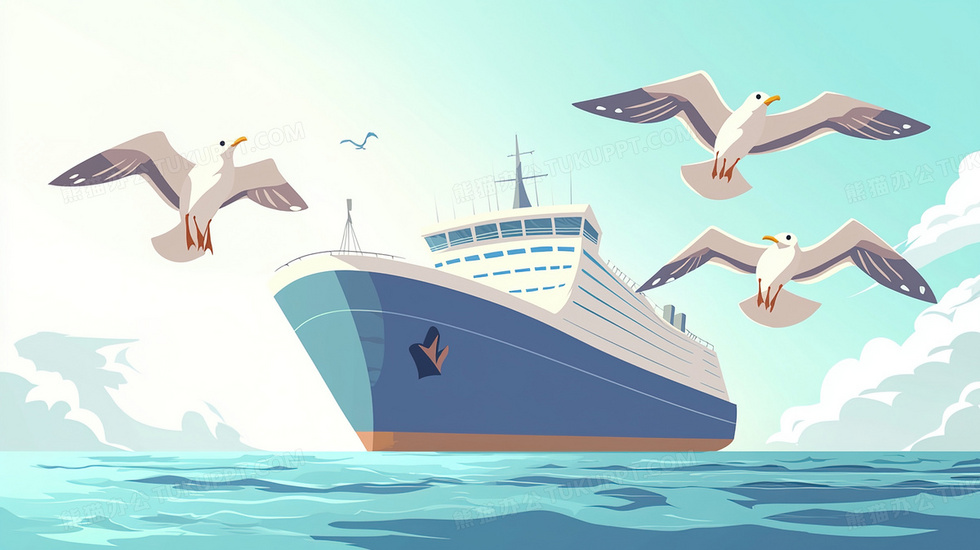 本作品内容为蓝天白云海上轮船飞鸟插画, 格式为 jpg, 大小2 MB, 图片尺寸为2912 x 1632, 源文件无水印, 欢迎使用熊猫办公。 如认为平台内容涉嫌侵权,可通过邮件:tousu@tukuppt.com提出书面通知,我们将及时处理。