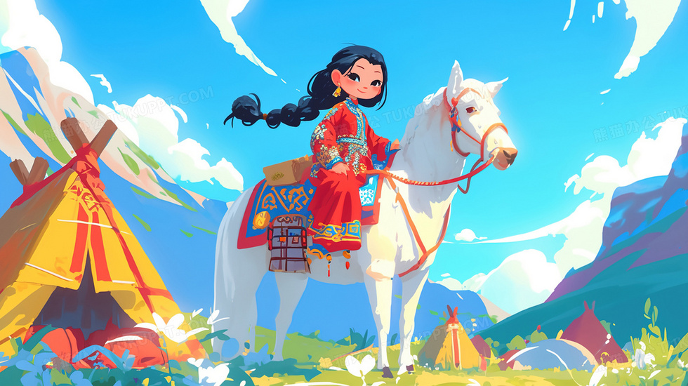 本作品内容为蓝天白云草原骑马的少数民族女孩插画, 格式为 jpg, 大小3 MB, 图片尺寸为2912 x 1632, 源文件无水印, 欢迎使用熊猫办公。 如认为平台内容涉嫌侵权,可通过邮件:tousu@tukuppt.com提出书面通知,我们将及时处理。