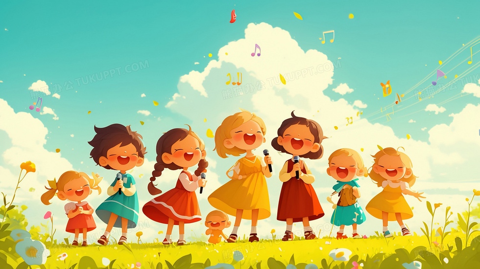 本作品内容为草地开心合唱唱歌的小朋友插画, 格式为 jpg, 大小3 MB, 图片尺寸为2912 x 1632, 源文件无水印, 欢迎使用熊猫办公。 如认为平台内容涉嫌侵权,可通过邮件:tousu@tukuppt.com提出书面通知,我们将及时处理。