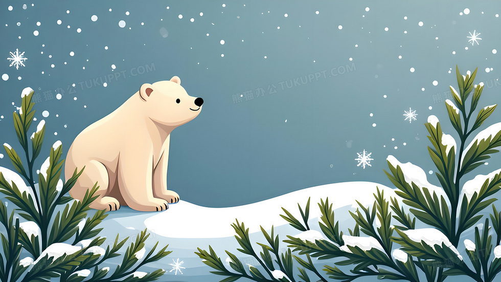 本作品内容为冬季海报松针树枝与雪地北极熊插画背景, 格式为 jpg, 大小2 MB, 图片尺寸为3072 x 1728, 作品中背景图片无需修改, 源文件无水印,可以直接使用, 欢迎使用熊猫办公。 如认为平台内容涉嫌侵权,可通过邮件:tousu@tukuppt.com提出书面通知,我们将及时处理。