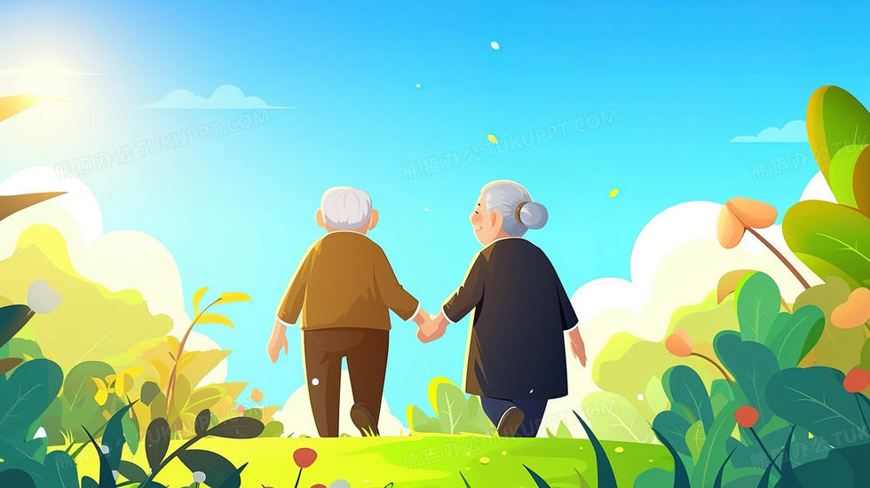 本作品内容为重阳外出出游散步的老人背影插画, 格式为 jpg, 大小2 MB, 图片尺寸为2912 x 1632, 源文件无水印, 欢迎使用熊猫办公。 如认为平台内容涉嫌侵权,可通过邮件:tousu@tukuppt.com提出书面通知,我们将及时处理。