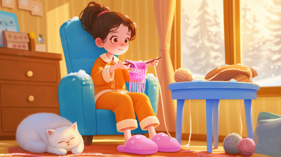 本作品内容为坐沙发织毛线的女孩和宠物猫插画, 格式为 jpg, 大小3 MB, 图片尺寸为2912 x 1632, 源文件无水印, 欢迎使用熊猫办公。 如认为平台内容涉嫌侵权,可通过邮件:tousu@tukuppt.com提出书面通知,我们将及时处理。