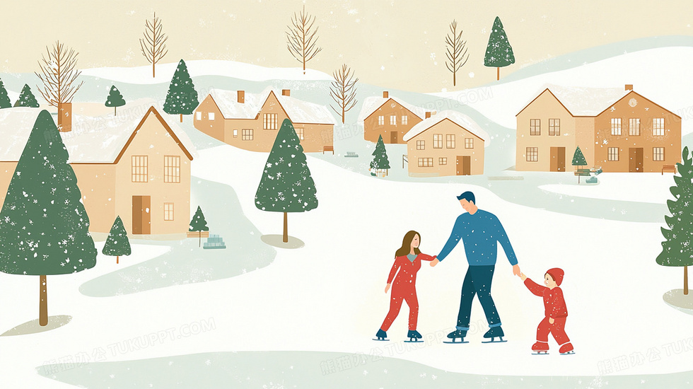 本作品内容为冬天雪地溜冰的孩子和父母插画, 格式为 jpg, 大小2 MB, 图片尺寸为2912 x 1632, 源文件无水印, 欢迎使用熊猫办公。 如认为平台内容涉嫌侵权,可通过邮件:tousu@tukuppt.com提出书面通知,我们将及时处理。