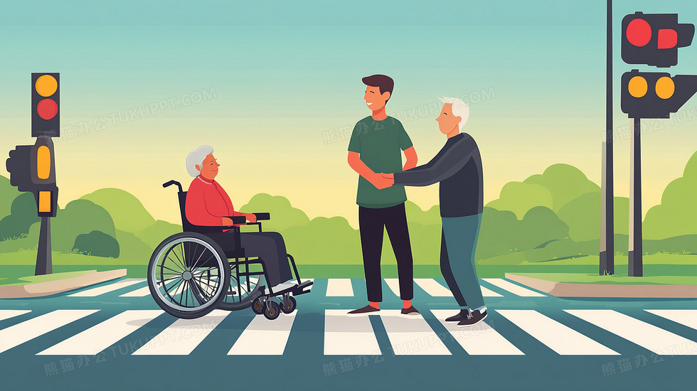 本作品内容为志愿者献爱心帮助老人过马路插画, 格式为 jpg, 大小2 MB, 图片尺寸为2912 x 1632, 源文件无水印, 欢迎使用熊猫办公。 如认为平台内容涉嫌侵权,可通过邮件:tousu@tukuppt.com提出书面通知,我们将及时处理。