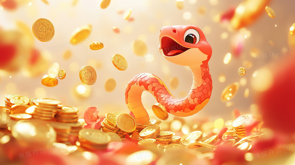 本作品内容为卡通蛇年金币与蛇创意插画, 格式为 jpg, 大小3 MB, 图片尺寸为2912 x 1632, 源文件无水印, 欢迎使用熊猫办公。 如认为平台内容涉嫌侵权,可通过邮件:tousu@tukuppt.com提出书面通知,我们将及时处理。