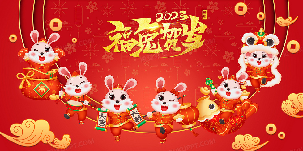 本作品内容为福兔贺岁创意插画兔年生肖背景, 格式为 psd, 大小38 MB, 图片尺寸为4724 x 2362, 作品中背景图片无需修改, 源文件无水印,可以直接使用, 欢迎使用熊猫办公。 如认为平台内容涉嫌侵权,可通过邮件:tousu@tukuppt.com提出书面通知,我们将及时处理。