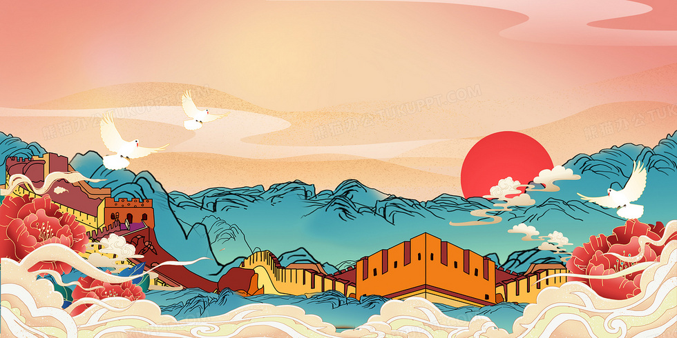 本作品内容为国潮中国风万里长城党政党建背景, 格式为 psd, 大小41 MB, 图片尺寸为4724 x 2362, 作品中背景图片无需修改, 源文件无水印,可以直接使用, 欢迎使用熊猫办公。 如认为平台内容涉嫌侵权,可通过邮件:tousu@tukuppt.com提出书面通知,我们将及时处理。