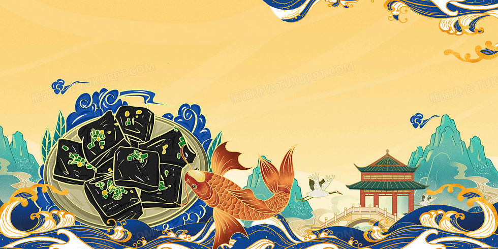 本作品内容为风味臭豆腐国潮古风创意简约的电商卖货背景, 格式为 psd, 大小73 MB, 图片尺寸为4724 x 2362, 作品中背景图片无需修改, 源文件无水印,可以直接使用, 欢迎使用熊猫办公。 如认为平台内容涉嫌侵权,可通过邮件:tousu@tukuppt.com提出书面通知,我们将及时处理。