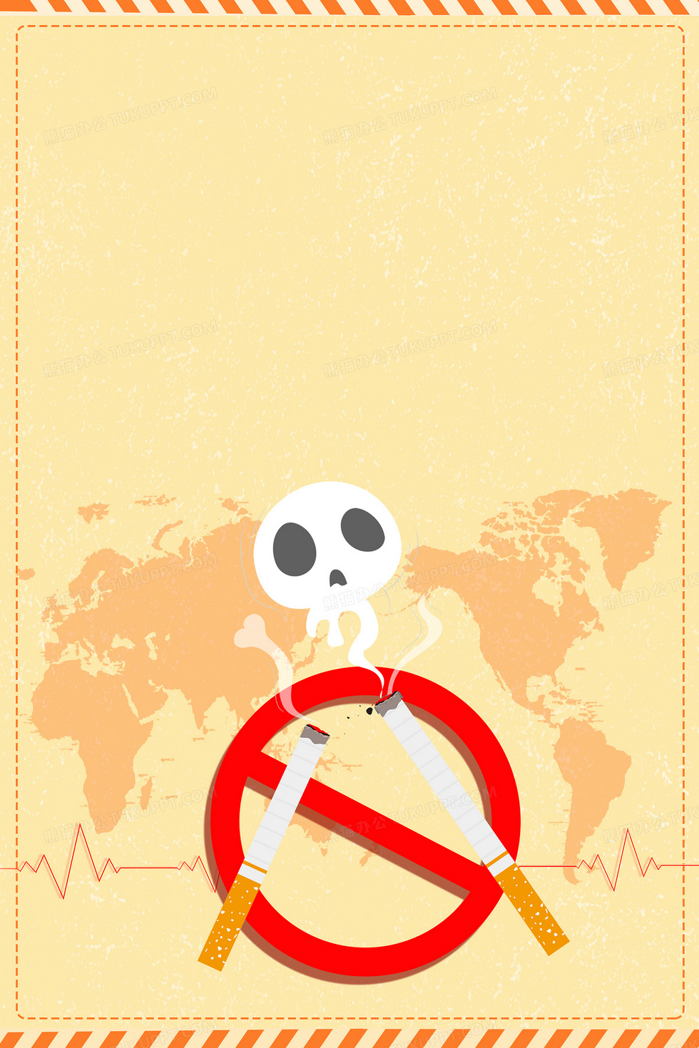 本作品内容为简约世界无烟日标识背景, 格式为 psd, 大小16 MB, 图片尺寸为3543 x 5315, 作品中背景图片无需修改, 源文件无水印,可以直接使用, 欢迎使用熊猫办公。 如认为平台内容涉嫌侵权,可通过邮件:tousu@tukuppt.com提出书面通知,我们将及时处理。