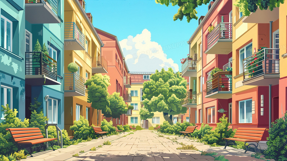 本作品内容为夏日街道长椅场景插画, 格式为 jpg, 大小4 MB, 图片尺寸为2912 x 1632, 源文件无水印, 欢迎使用熊猫办公。 如认为平台内容涉嫌侵权,可通过邮件:tousu@tukuppt.com提出书面通知,我们将及时处理。