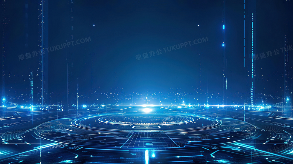 本作品内容为蓝色科技感圆环舞台背景, 格式为 jpg, 大小4 MB, 图片尺寸为2912 x 1632, 作品中背景图片无需修改, 源文件无水印,可以直接使用, 欢迎使用熊猫办公。 如认为平台内容涉嫌侵权,可通过邮件:tousu@tukuppt.com提出书面通知,我们将及时处理。