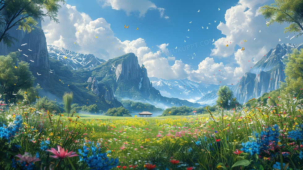 本作品内容为唯美清新自然美景花草丛插画, 格式为 jpg, 大小3 MB, 图片尺寸为2240 x 1256, 源文件无水印, 欢迎使用熊猫办公。 如认为平台内容涉嫌侵权,可通过邮件:tousu@tukuppt.com提出书面通知,我们将及时处理。