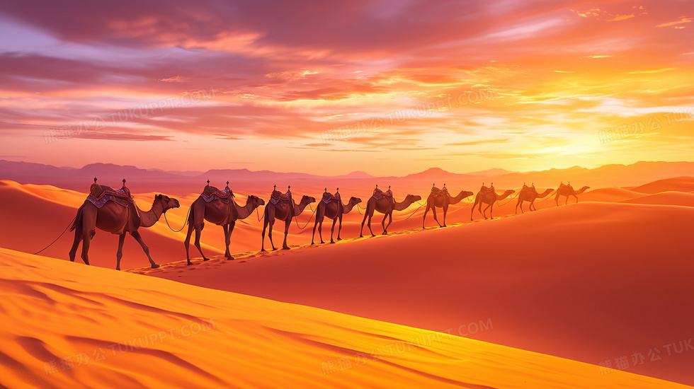 本作品内容为橙色沙漠上的驼队背景, 格式为 jpg, 大小3 MB, 图片尺寸为2912 x 1632, 作品中背景图片无需修改, 源文件无水印,可以直接使用, 欢迎使用熊猫办公。 如认为平台内容涉嫌侵权,可通过邮件:tousu@tukuppt.com提出书面通知,我们将及时处理。