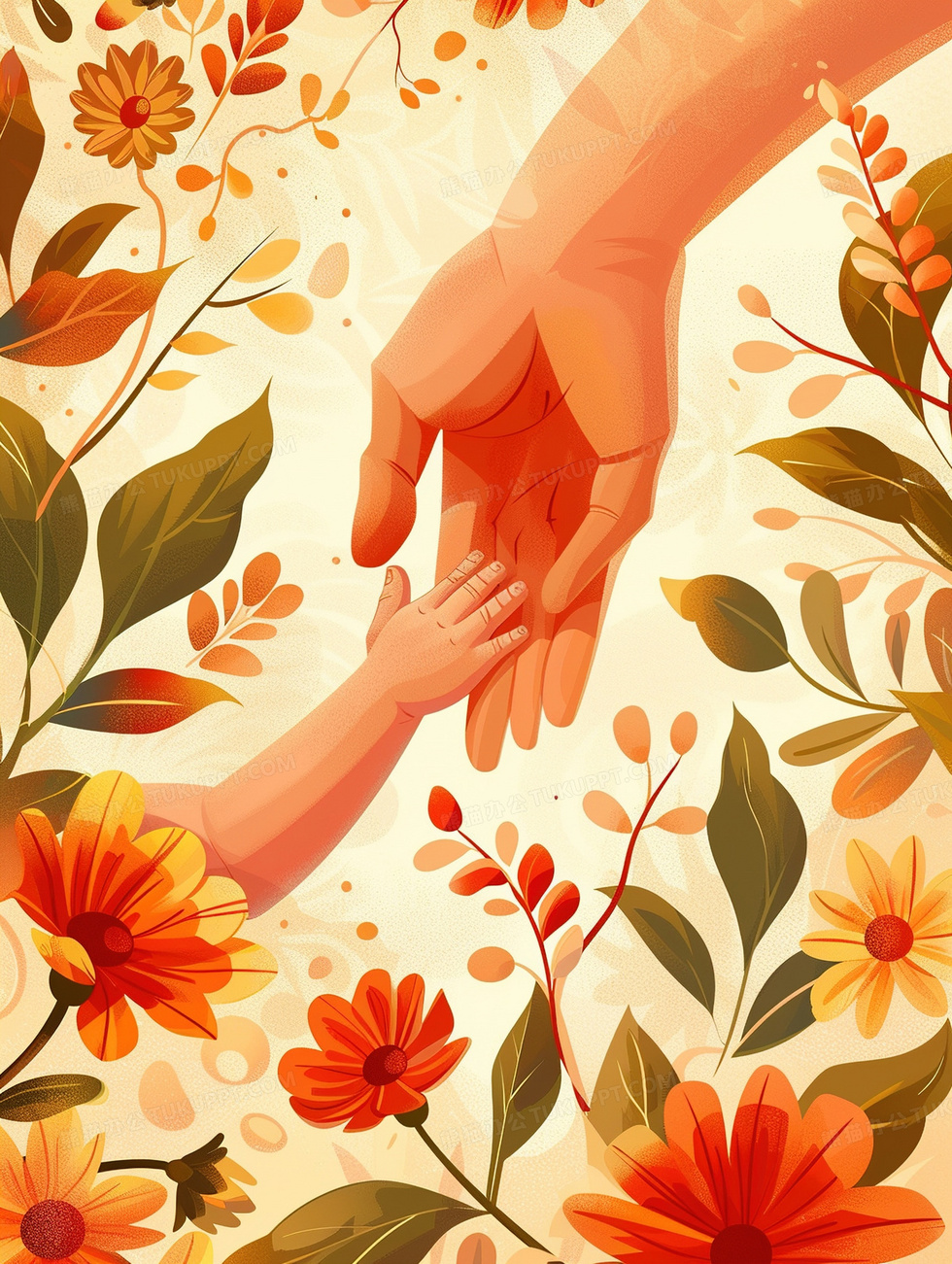 本作品内容为植物花卉大手拉小手插画, 格式为 jpg, 大小4 MB, 图片尺寸为1856 x 2464, 源文件无水印, 欢迎使用熊猫办公。 如认为平台内容涉嫌侵权,可通过邮件:tousu@tukuppt.com提出书面通知,我们将及时处理。