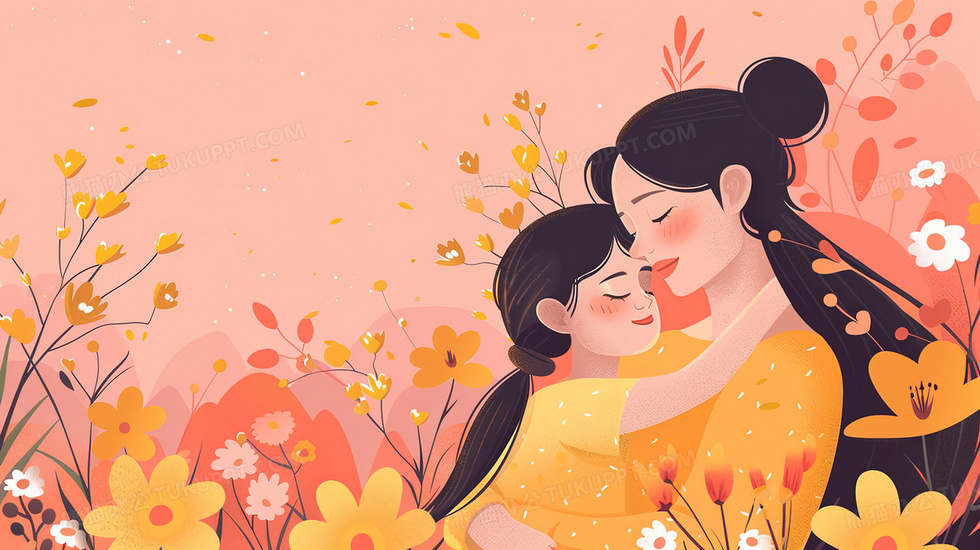 本作品内容为粉色花海中的母亲和孩子插画, 格式为 jpg, 大小3 MB, 图片尺寸为2912 x 1632, 源文件无水印, 欢迎使用熊猫办公。 如认为平台内容涉嫌侵权,可通过邮件:tousu@tukuppt.com提出书面通知,我们将及时处理。