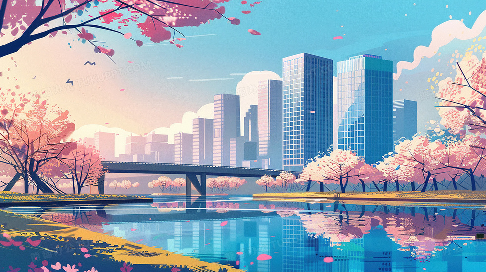 本作品内容为春天城市建筑自然风景插画, 格式为 jpg, 大小5 MB, 图片尺寸为2912 x 1632, 源文件无水印, 欢迎使用熊猫办公。 如认为平台内容涉嫌侵权,可通过邮件:tousu@tukuppt.com提出书面通知,我们将及时处理。