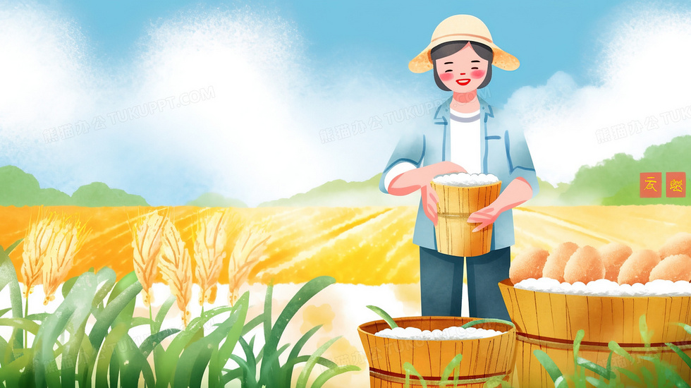 本作品内容为黄金麦田里手捧粮食的农民插画, 格式为 jpg, 大小2 MB, 图片尺寸为2912 x 1632, 源文件无水印, 欢迎使用熊猫办公。 如认为平台内容涉嫌侵权,可通过邮件:tousu@tukuppt.com提出书面通知,我们将及时处理。