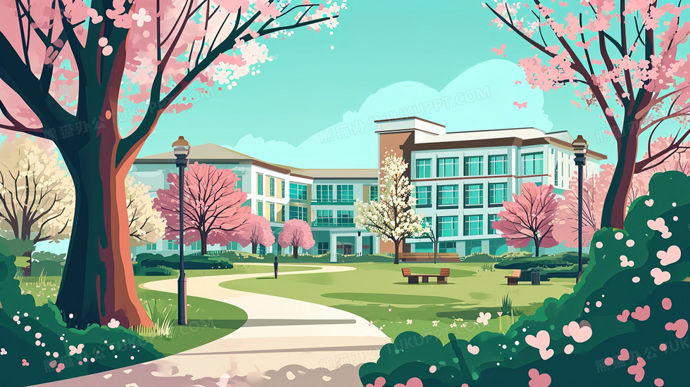 本作品内容为春季鲜花盛开的校园小道插画, 格式为 jpg, 大小3 MB, 图片尺寸为2912 x 1632, 源文件无水印, 欢迎使用熊猫办公。 如认为平台内容涉嫌侵权,可通过邮件:tousu@tukuppt.com提出书面通知,我们将及时处理。