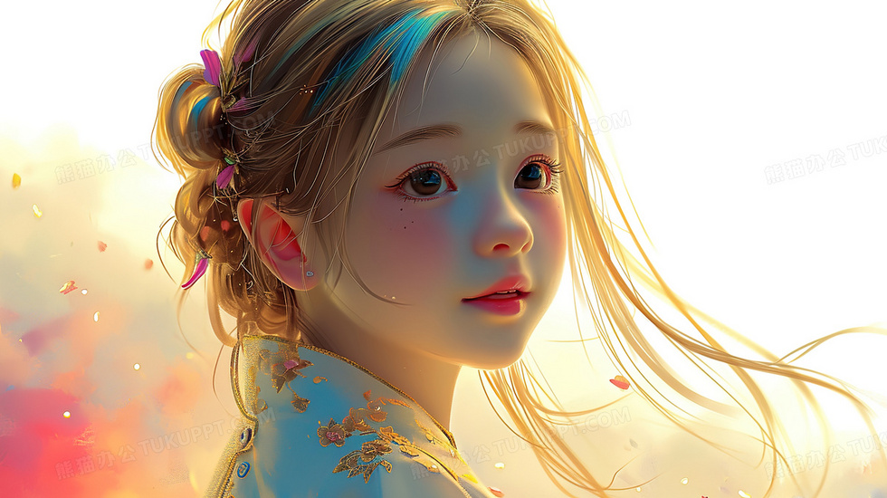 本作品内容为一个有明亮大眼睛的金发古风少女插画, 格式为 jpg, 大小2 MB, 图片尺寸为2912 x 1632, 源文件无水印, 欢迎使用熊猫办公。 如认为平台内容涉嫌侵权,可通过邮件:tousu@tukuppt.com提出书面通知,我们将及时处理。