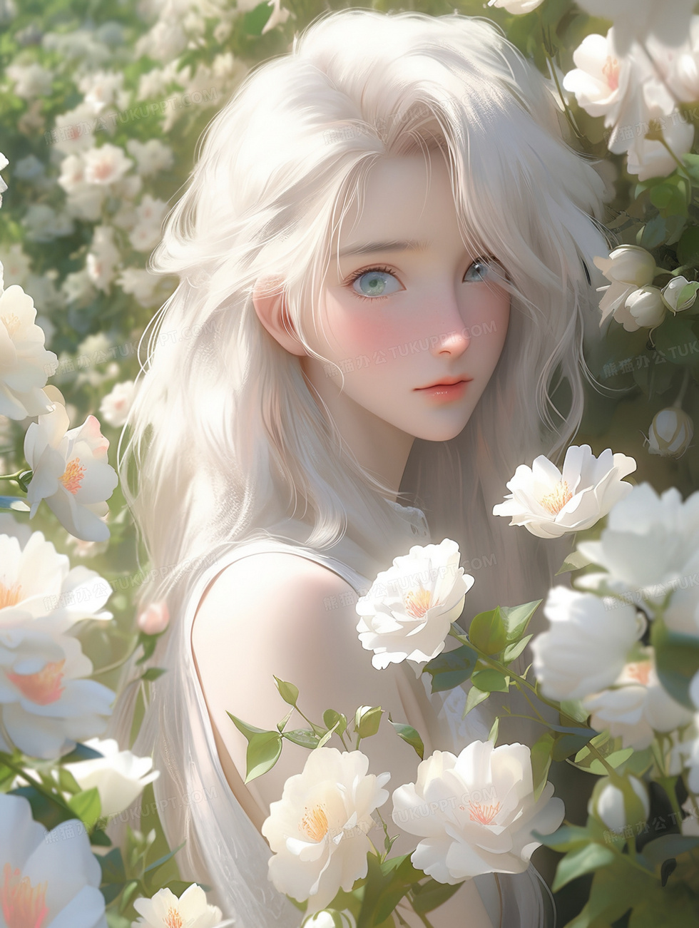 本作品内容为花朵中的银发女孩唯美插画, 格式为 jpg, 大小2 MB, 图片尺寸为1856 x 2464, 源文件无水印, 欢迎使用熊猫办公。 如认为平台内容涉嫌侵权,可通过邮件:tousu@tukuppt.com提出书面通知,我们将及时处理。