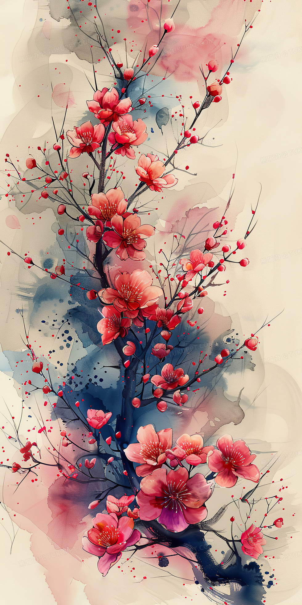 本作品内容为中国风水墨梅花插画, 格式为 jpg, 大小4 MB, 图片尺寸为1536 x 3072, 源文件无水印, 欢迎使用熊猫办公。 如认为平台内容涉嫌侵权,可通过邮件:tousu@tukuppt.com提出书面通知,我们将及时处理。