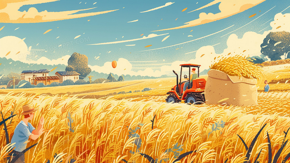 本作品内容为芒种节气田园粮食丰收插画, 格式为 jpg, 大小4 MB, 图片尺寸为2912 x 1632, 源文件无水印, 欢迎使用熊猫办公。 如认为平台内容涉嫌侵权,可通过邮件:tousu@tukuppt.com提出书面通知,我们将及时处理。