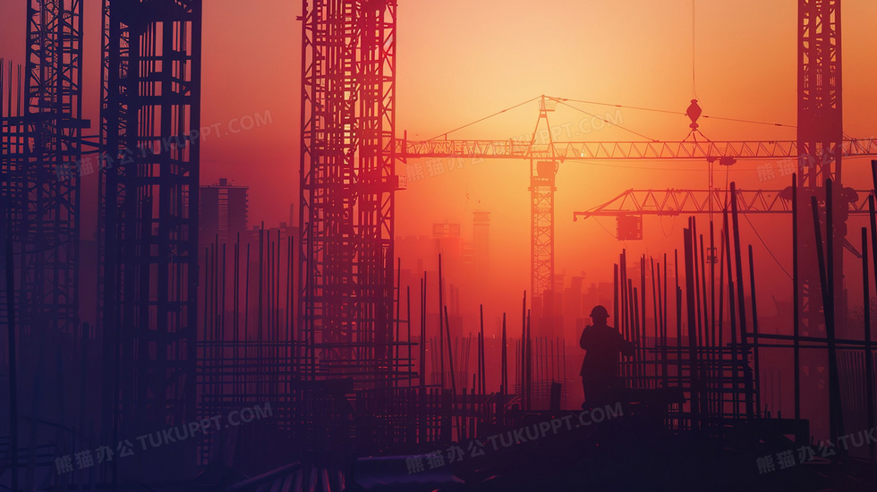 本作品内容为安全生产月建筑工地剪影背景, 格式为 jpg, 大小2 MB, 图片尺寸为2912 x 1632, 作品中背景图片无需修改, 源文件无水印,可以直接使用, 欢迎使用熊猫办公。 如认为平台内容涉嫌侵权,可通过邮件:tousu@tukuppt.com提出书面通知,我们将及时处理。