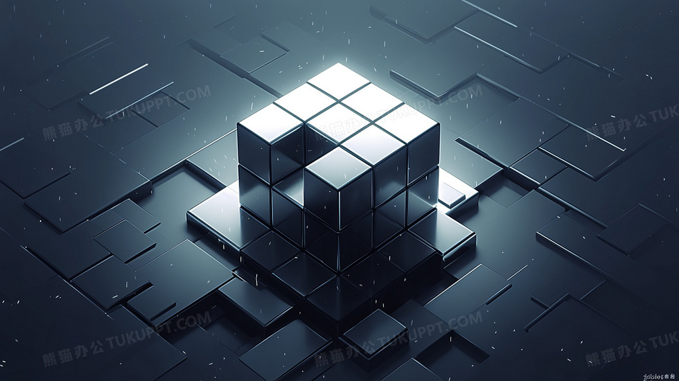 本作品内容为科技感魔方正方体背景, 格式为 jpg, 大小2 MB, 图片尺寸为2912 x 1632, 作品中背景图片无需修改, 源文件无水印,可以直接使用, 欢迎使用熊猫办公。 如认为平台内容涉嫌侵权,可通过邮件:tousu@tukuppt.com提出书面通知,我们将及时处理。