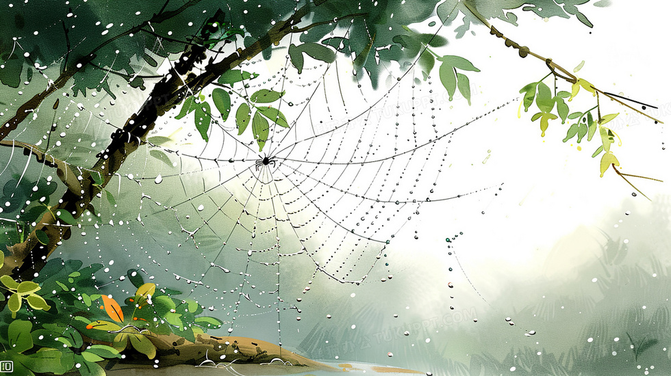 本作品内容为夏季雨后蜘蛛网手绘插画, 格式为 jpg, 大小4 MB, 图片尺寸为2912 x 1632, 源文件无水印, 欢迎使用熊猫办公。 如认为平台内容涉嫌侵权,可通过邮件:tousu@tukuppt.com提出书面通知,我们将及时处理。