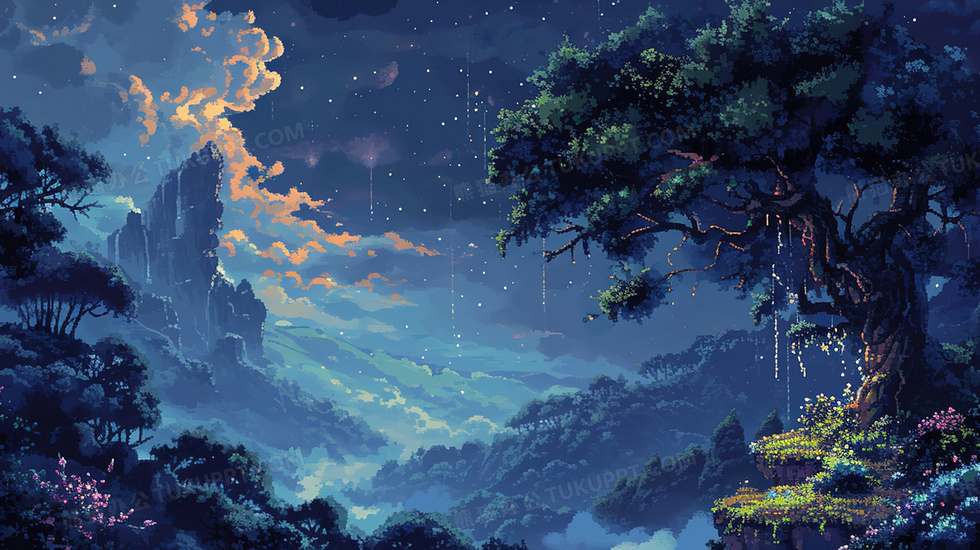 本作品内容为游戏像素风夜晚树林唯美风景插画, 格式为 jpg, 大小3 MB, 图片尺寸为2912 x 1632, 源文件无水印, 欢迎使用熊猫办公。 如认为平台内容涉嫌侵权,可通过邮件:tousu@tukuppt.com提出书面通知,我们将及时处理。