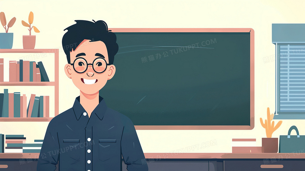 本作品内容为站在教室黑板前的男老师插画, 格式为 jpg, 大小2 MB, 图片尺寸为2912 x 1632, 源文件无水印, 欢迎使用熊猫办公。 如认为平台内容涉嫌侵权,可通过邮件:tousu@tukuppt.com提出书面通知,我们将及时处理。