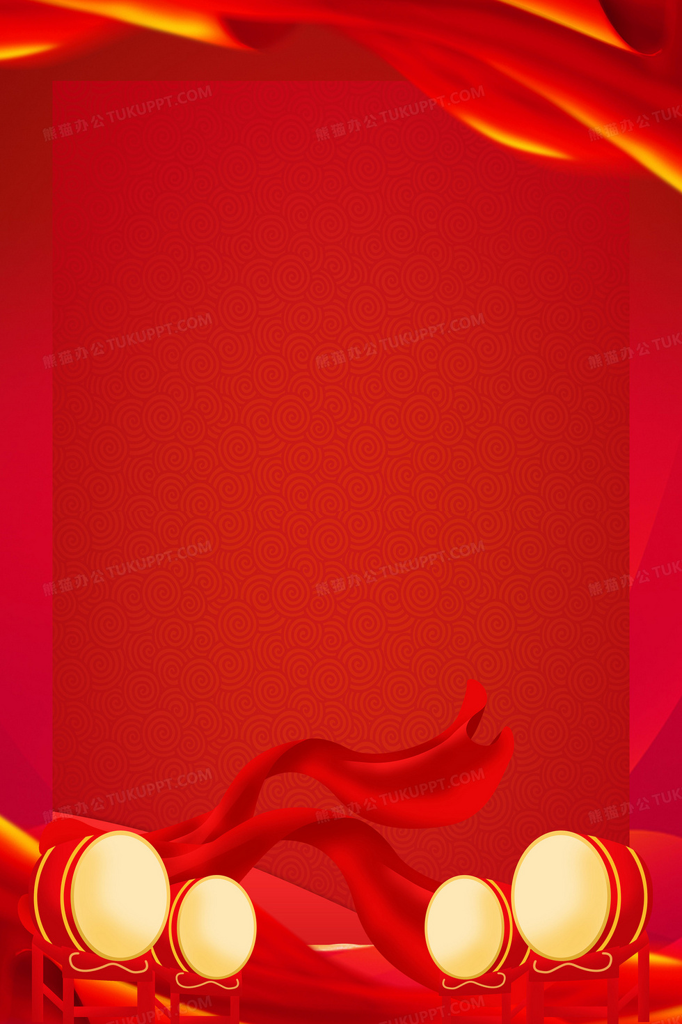 本作品内容为红色喜庆打鼓年会宣传背景, 格式为 psd, 大小46 MB, 图片尺寸为3543 x 5315, 作品中背景图片无需修改, 源文件无水印,可以直接使用, 欢迎使用熊猫办公。 如认为平台内容涉嫌侵权,可通过邮件:tousu@tukuppt.com提出书面通知,我们将及时处理。