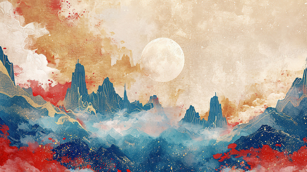 首页 > 插画 > 科技艺术 > 国潮风 > 唯美彩色国潮鎏金山水画插画