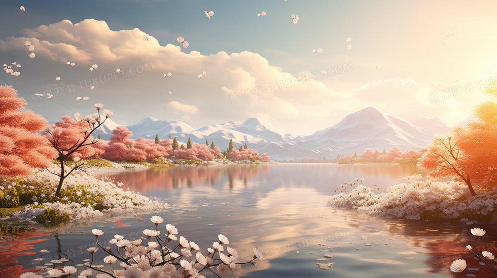 本作品内容为唯美蓝天白云下的春天山水风景插画, 格式为 jpg, 大小3 MB, 图片尺寸为2912 x 1632, 源文件无水印, 欢迎使用熊猫办公。 如认为平台内容涉嫌侵权,可通过邮件:tousu@tukuppt.com提出书面通知,我们将及时处理。