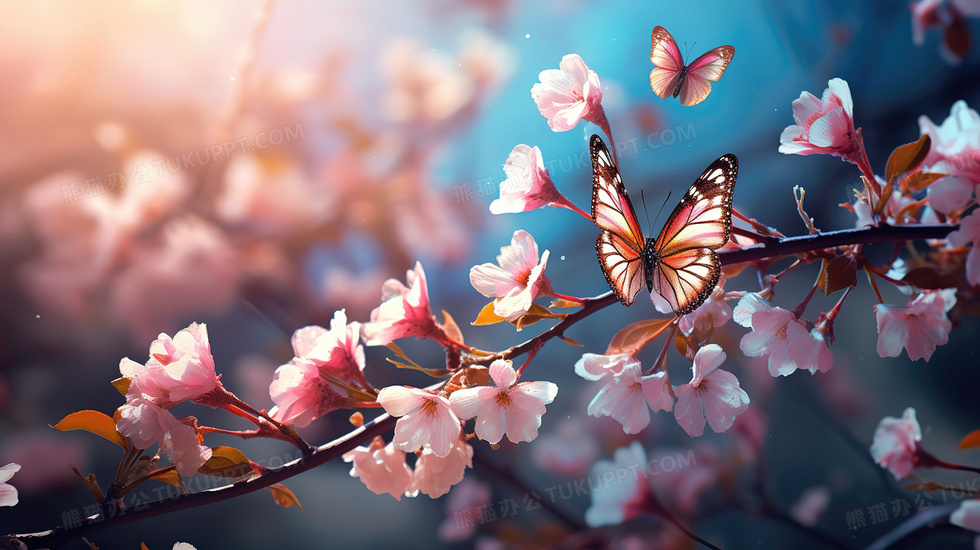 蓝色春天唯美梦幻樱花蝴蝶图片