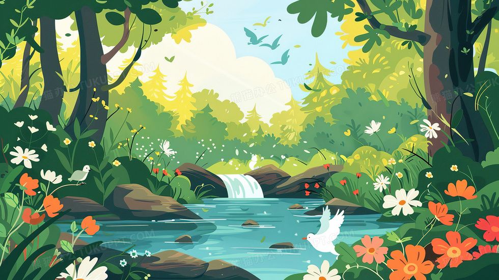 本作品内容为春分茂盛翠绿的森林场景插画, 格式为 jpg, 大小4 MB, 图片尺寸为2912 x 1632, 源文件无水印, 欢迎使用熊猫办公。 如认为平台内容涉嫌侵权,可通过邮件:tousu@tukuppt.com提出书面通知,我们将及时处理。