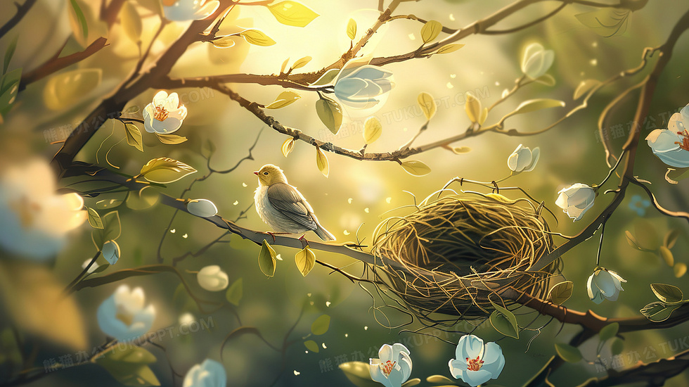 本作品内容为春分时节樱花树上的鸟巢插画, 格式为 jpg, 大小3 MB, 图片尺寸为2912 x 1632, 源文件无水印, 欢迎使用熊猫办公。 如认为平台内容涉嫌侵权,可通过邮件:tousu@tukuppt.com提出书面通知,我们将及时处理。